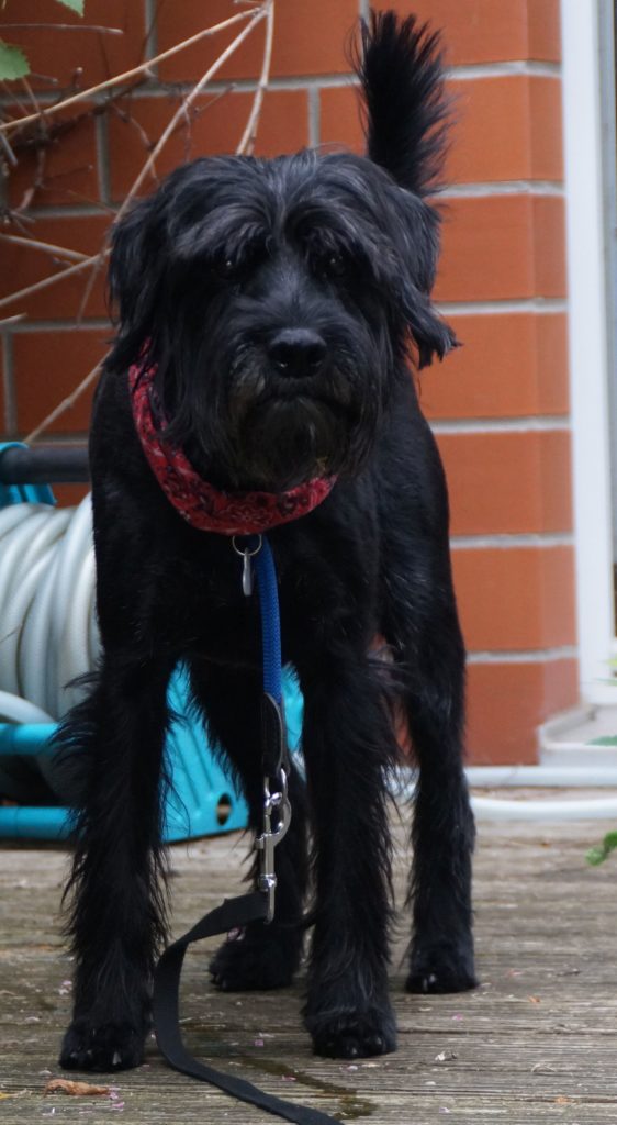 Wir haben uns im Juni 2015 einen 6-jährigen Mittelschnauzer aus dem Tierheim in Langenhagen geholt. Er heißt Archie. Ich war vorher schon etliche Male im Tierheim und bin mit ihm oft spazieren gegangen. Es waren immer sehr entspannte Spaziergänge, wir trafen viele andere Hunde, aber die interessierten Archie überhaupt nicht. Er war immer sehr ausgeglichen. Zu Hause veränderte sich sein Verhalten total. Er zog an der Leine und ging auf jeden Hund los. Er machte jedes Mal einen riesen Aufstand, wenn jemand an unserer Haustür vorbei ging. Jeder Spaziergang wurde zu einer Tortur und ich bekam richtig Angst mit ihm raus zu gehen. Wir gingen zu einer Hundeschule, wo Archie mit Leckerlies vollgestopft wurde, aber ansonsten rein gar nichts lernte was uns weitergeholfen hätte.