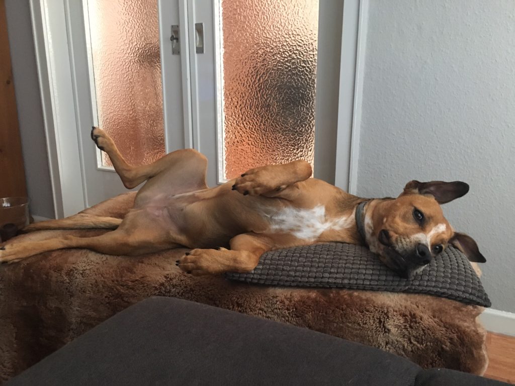 Ela hat meinen Zweibeiner dann noch vieles erklärt, was sie in bestimmten Situationen mit mir machen bzw. beibringen können und die beiden sind sehr glücklich mit Ela als Trainerin und „Aufbauhilfe“. Trotzdem, man sollte angefangene Projekte ja auch beenden und ich habe wieder angefangen mich dem Fußboden und der Verschönerung des heimatlichen Flurs zu widmen.
